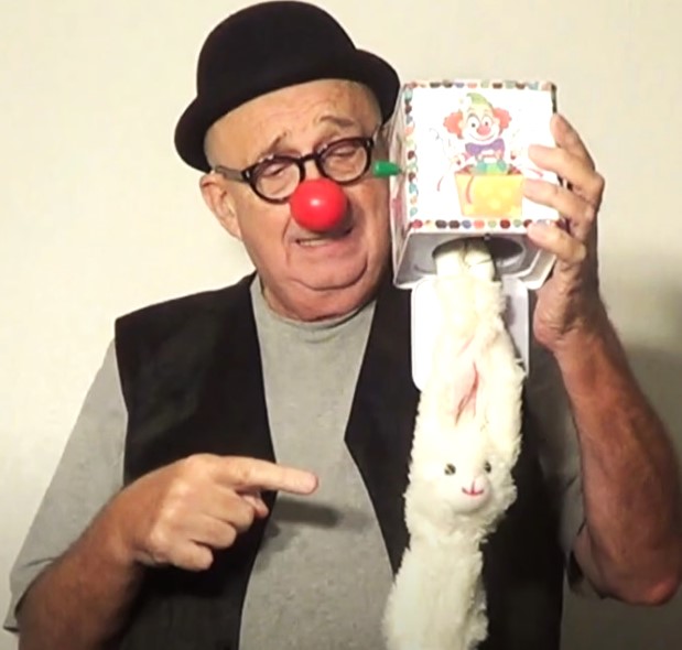 The gag is awesome,… Kids enjoy seeing an adult struggling with something they know is easy,… ALSO< getting the kids involved with singing the song faster and faster with no results is FUNNNNNY to the kids,… SECRET Kids LOVE hearing themselves laugh as well it becomes VERY contagious with them. Even if you can not find the "Jack in the Box" you can make one up very easily with a wooden or cardboard box which has been decorated,… 🙂 WIZZO